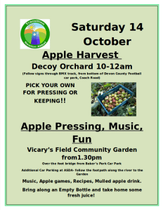 Apple Harvest at Decoy Orchard 10-12 am and Apple Pressing, Music and Fun at Vicary’s Field Community Garden from 1.30 pm with Transition Newton Abbot.